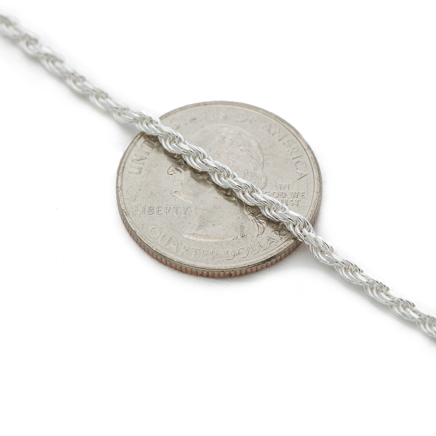 925 Sterling Silver 2.5MM Rope Chain Italian Crafted Necklace for Women and Men 16 - 36"