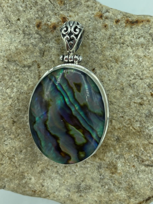 Abalone or Red Coral double sided Sterling Silver Pendant