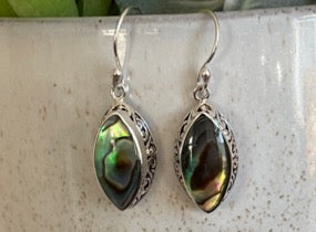 Lovely, genuine Abalone Sterling Silver earrings. The Abalone is hand cut in Bali. The silver work on these earrings is divine! These earrings have depth and stand out beautifully.