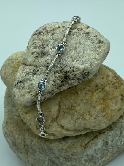 Genuine Semi-precious Blue Topaz bracelet, set just beautifully in the Sterling Silver. A unique design that is sure to please!