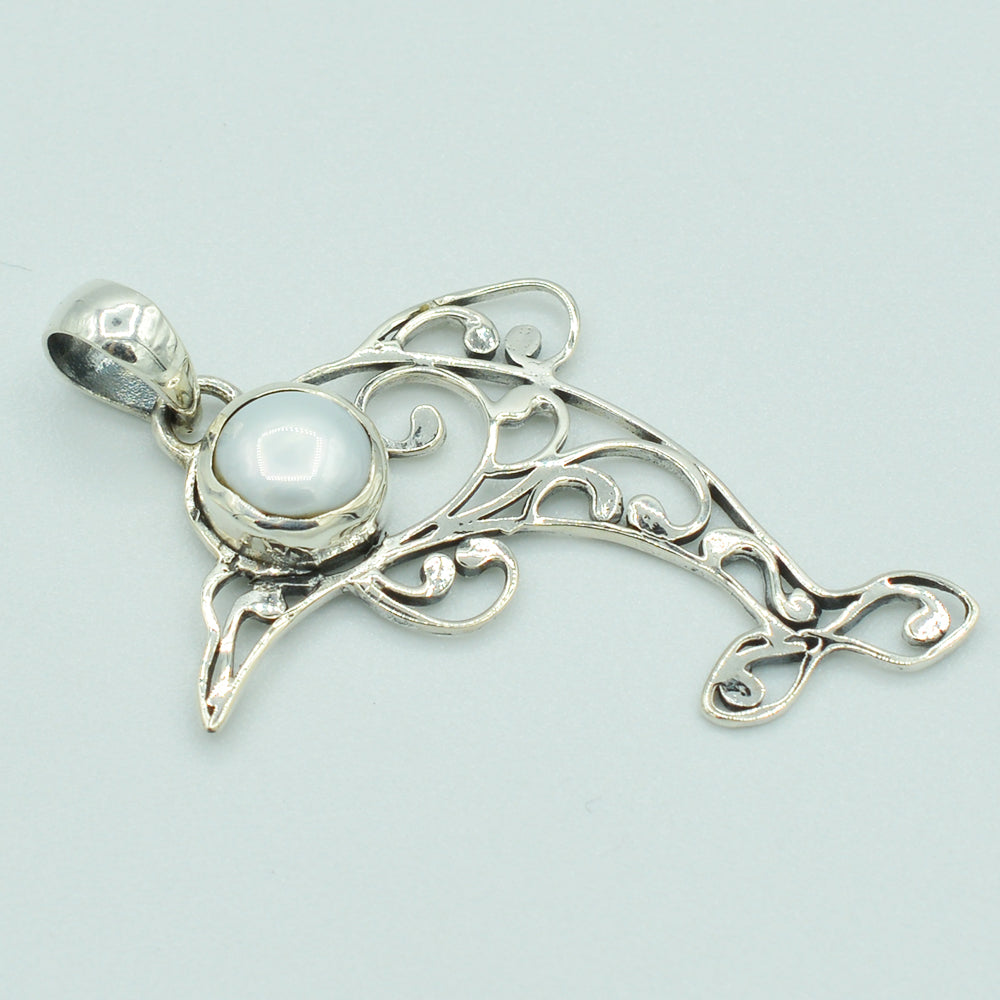 Fresh Water Pearl Sterling Silver Dolphin Pendant