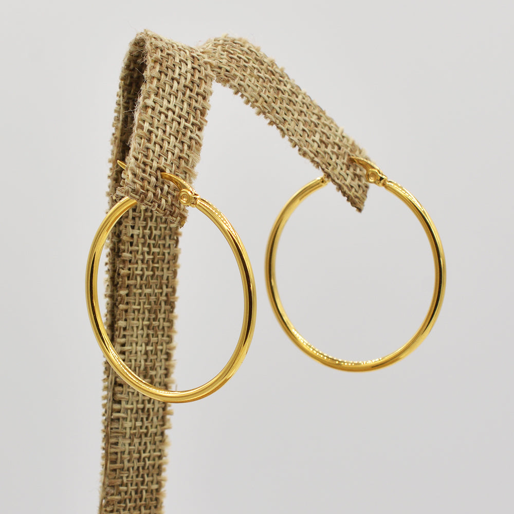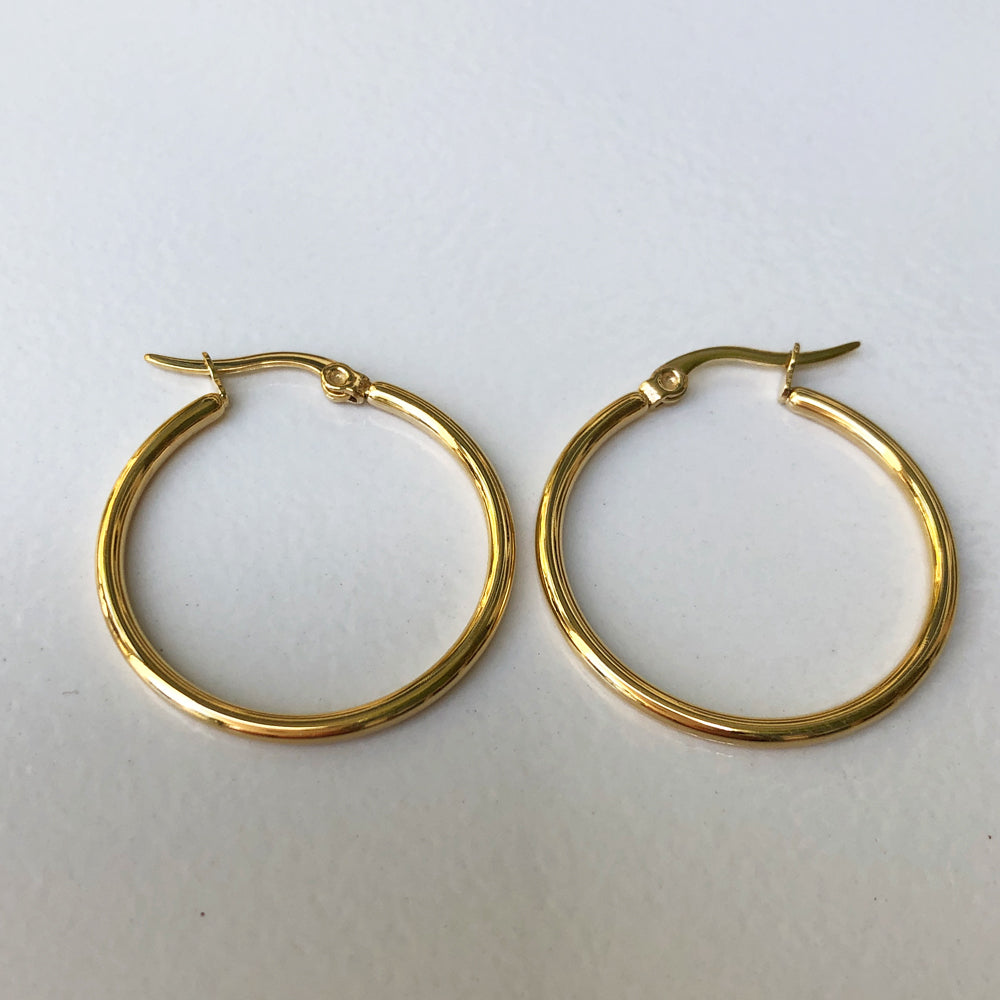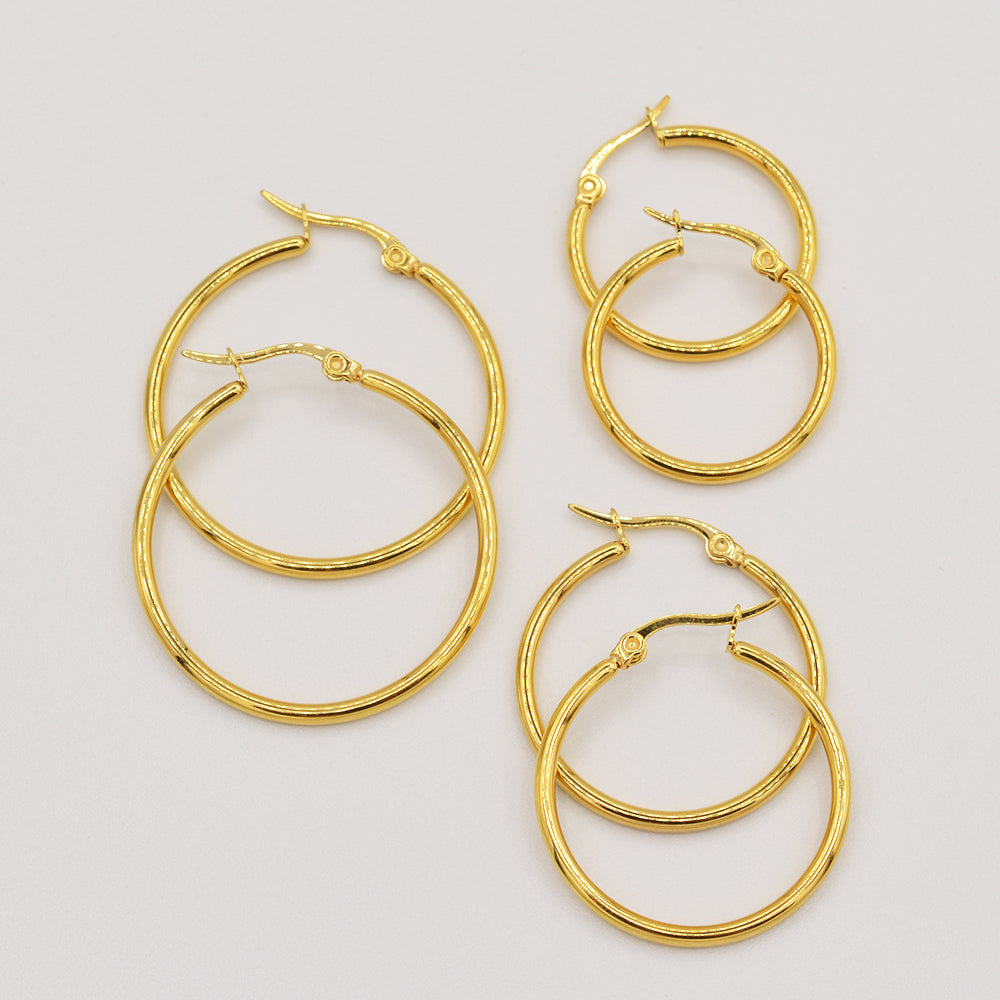 14KT Gold Plated stainless hoop earrings! These look EXACTLY like 14KT Gold but for the 10th of the price. My go to earrings when I want to wear gold! 3 different sizes, get all 3!!! :-)