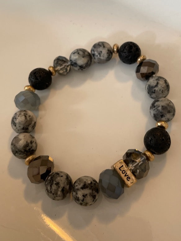 Lava Stone, Jasper and Glass bead Gemstone Bead bracelet, 10mm