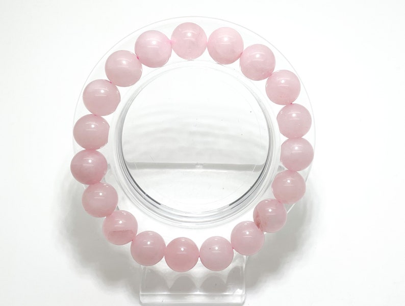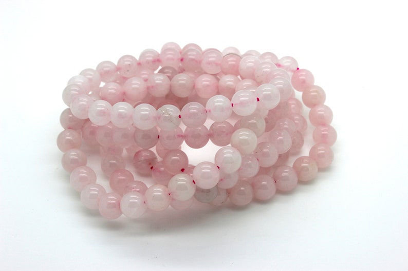 Light Pink Rose Quartz Smooth Round Natural Gemstone Stretch Bracelet