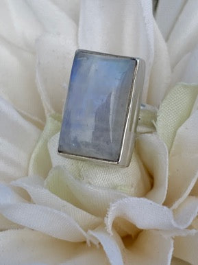 Ah...the lovely Moonstone. It is said to have a gentle energy, and to ease stress and feelings of anxiousness. The pictures don't do the color justice. This is a lovely stone hand cut in India.