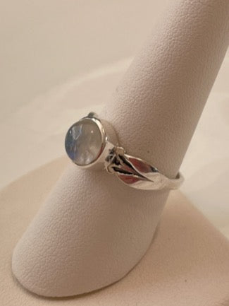 Much sought after stone, the Moonstone. Truly a lovely stone. This one is round in shape.