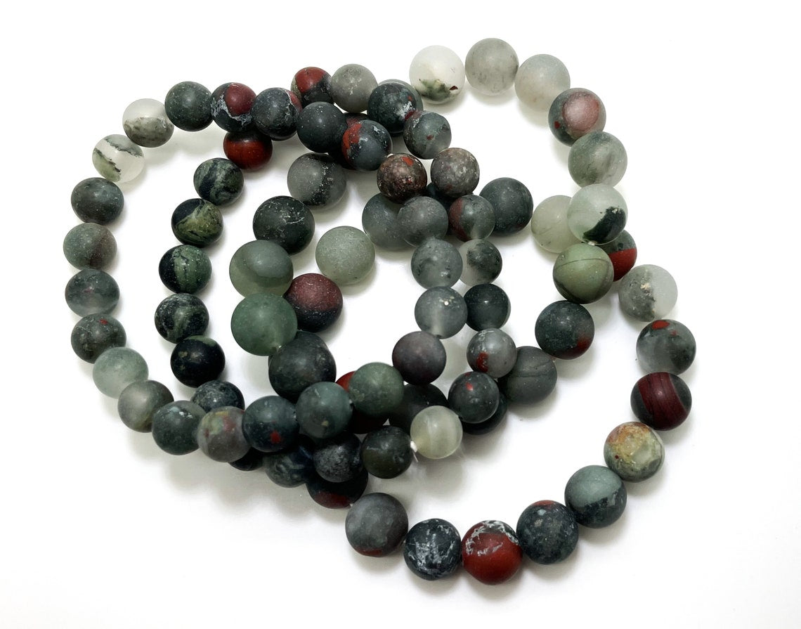Natural Bloodstone Matte Round Gem Stretch Bracelet