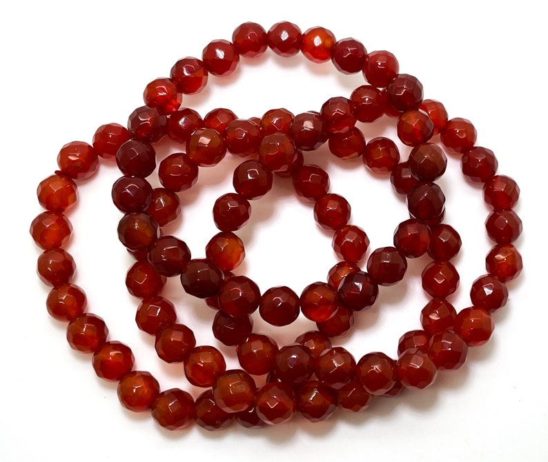 Natural Carnelian Faceted Round 8mm Gemstone Stretch Bracelet, 7" and fits comfortably, 8" wrist.