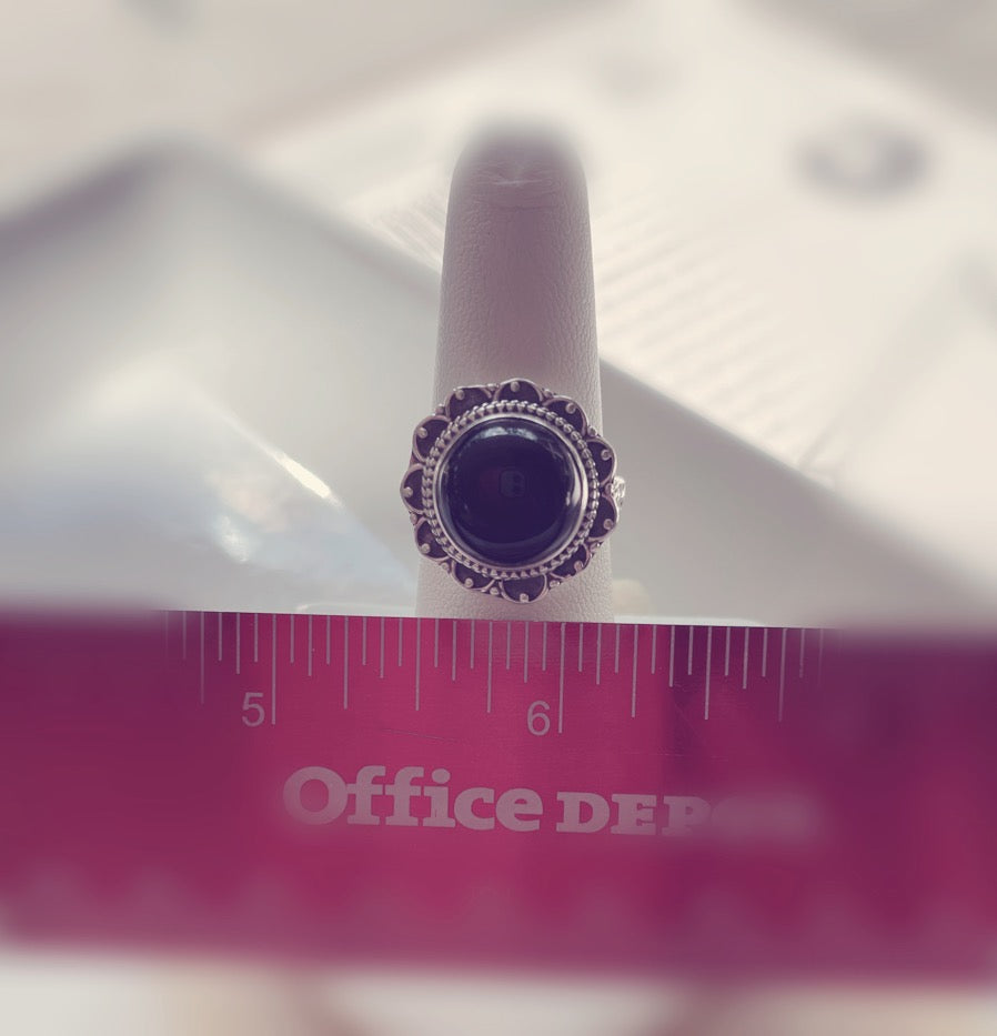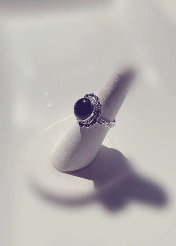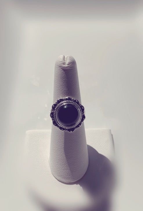 Rich, creamy black Onyx ring. The stone is hand cut in India.