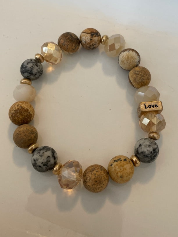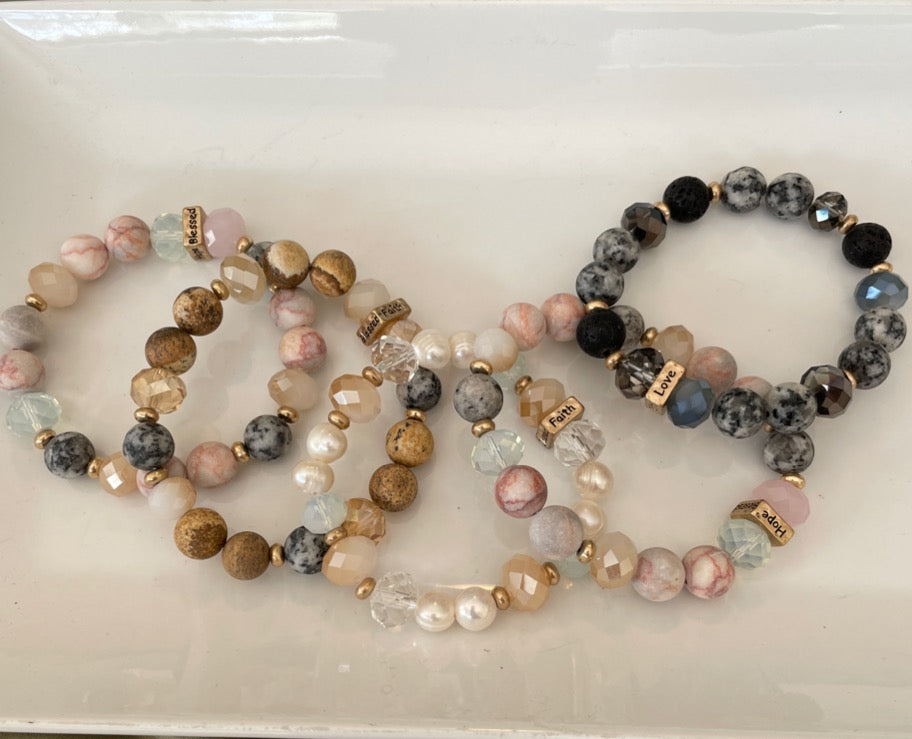 Gorgeous Picture Jasper, adorned with Faith, Love, Blessed and Hope. Standard size stretch bracelet.