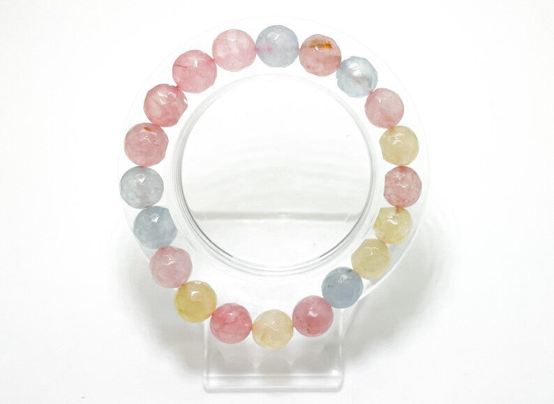 Rainbow Agate Faceted Round Gemstone Beads Stretch Bracelet