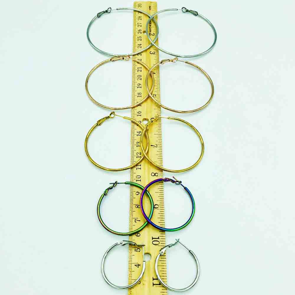 Stainless Steel Thin Hoop Earrings 30,40,50,60,or 70MM Silver, Gold and Rose Gold: SET OF 3
