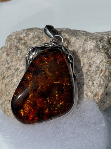 This is from the Baltic. Baltic amber is found along the shores of a large part of the Baltic Sea and the North Sea. Known to help with inflammatory properties. The color is the Amber is cognac.