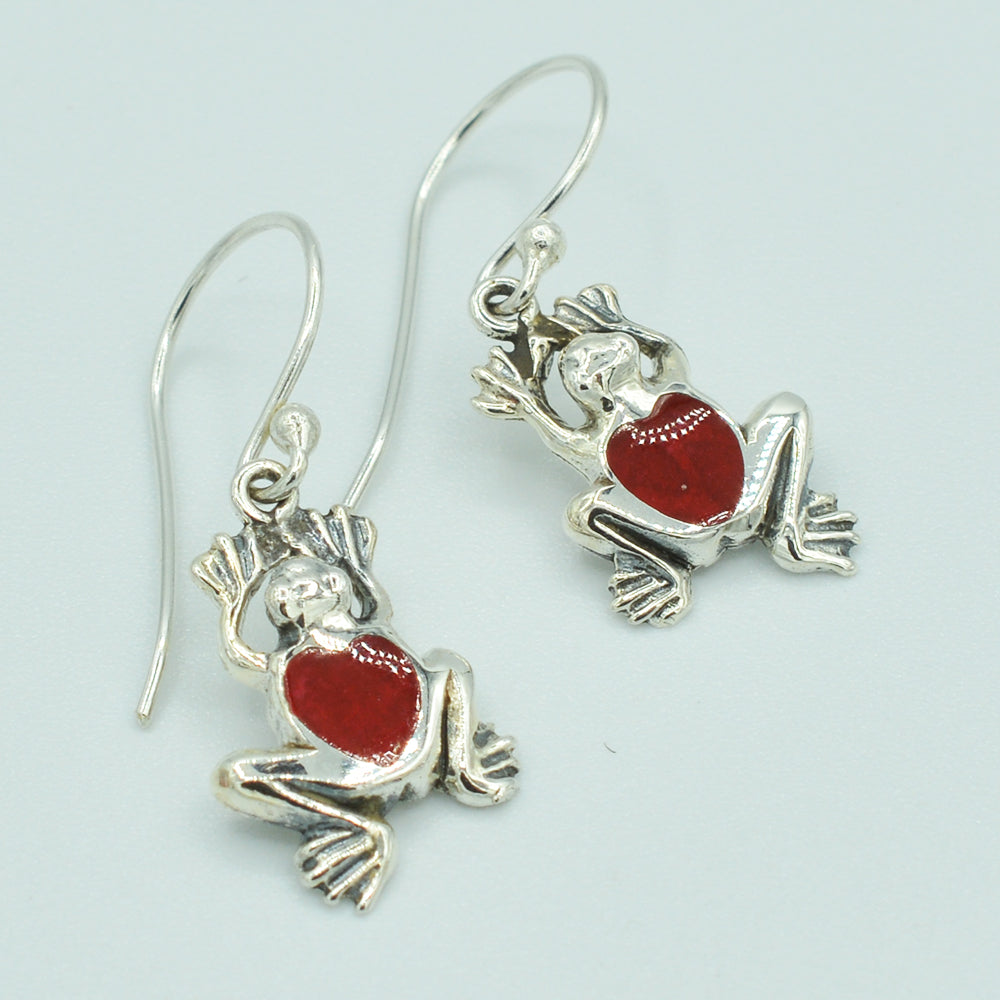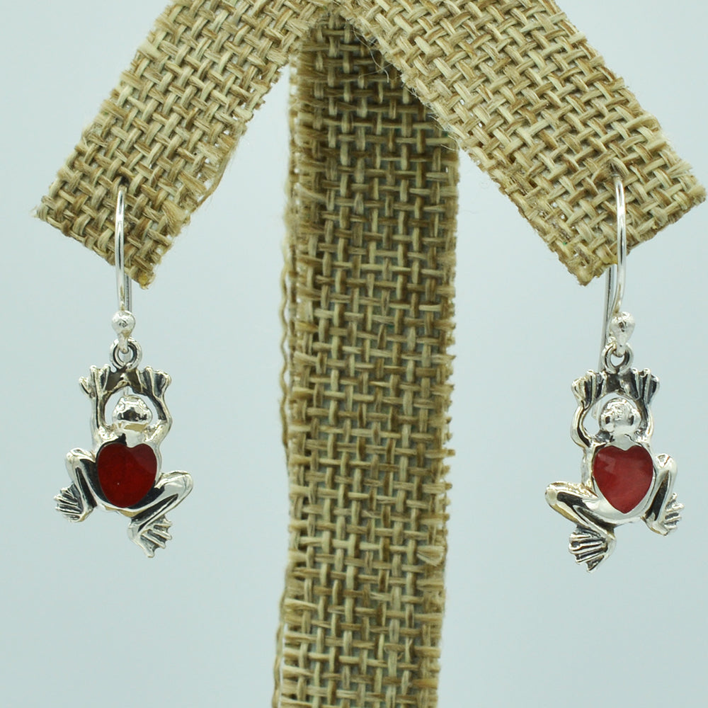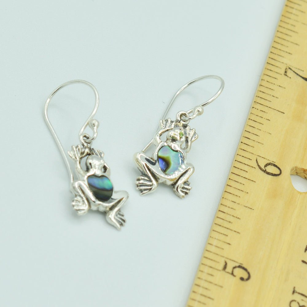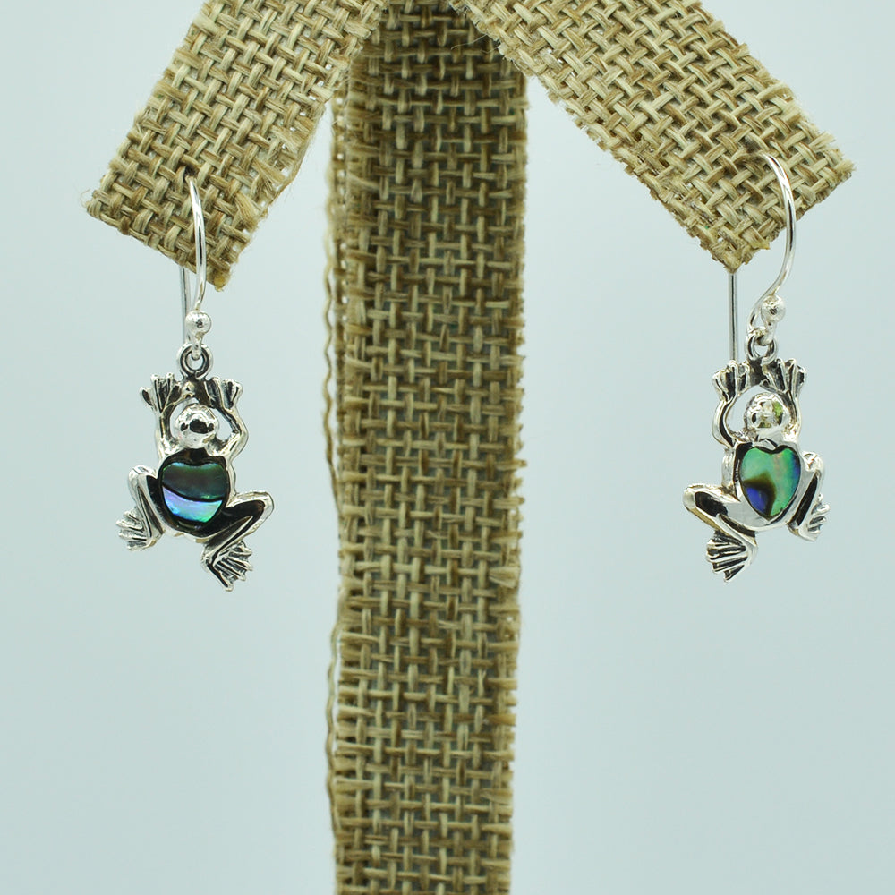 Sterling Silver Small Frog Earrings, Mother of Pearl, Coral or Abalone