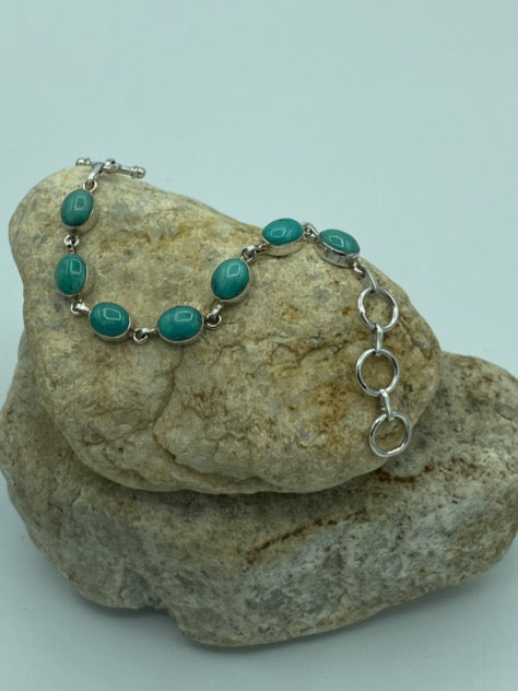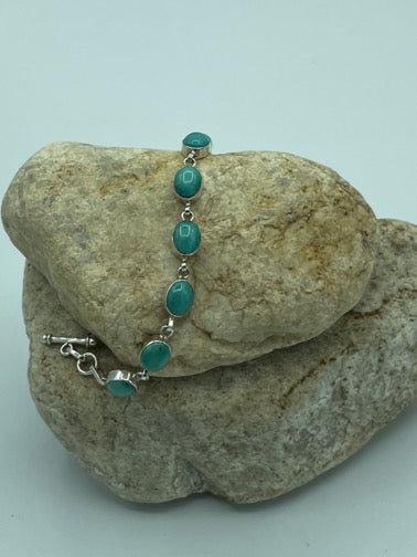 Turquoise Sterling Silver Toggle Bracelet 7"-7.5"